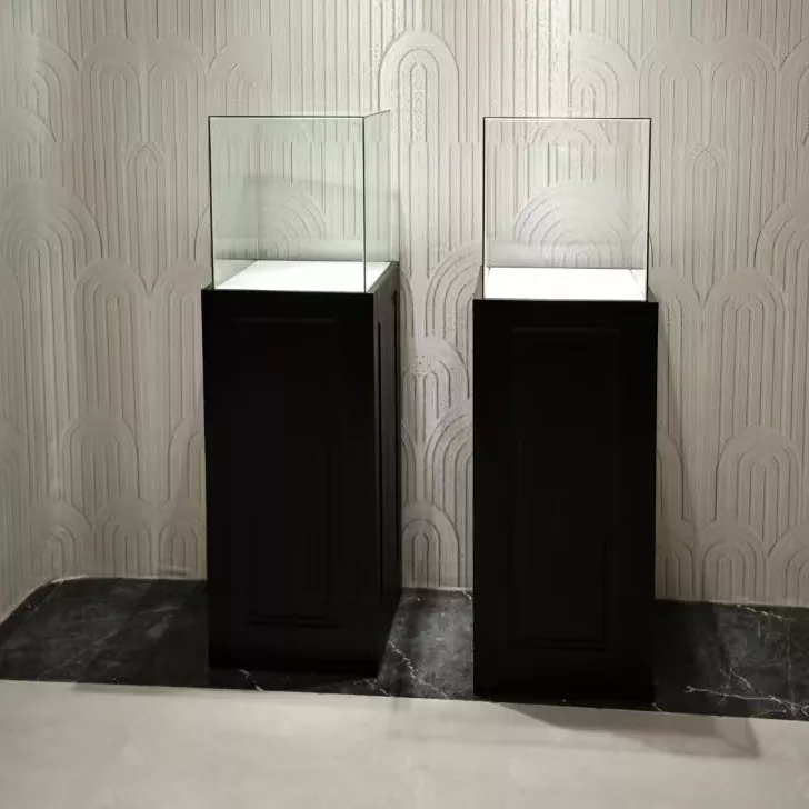 Em algumas empresas, na área de recepção ou na sala de amostras, é colocado esse expositor, com os principais produtos ou folhetos da empresa expostos. Parece profissional e sofisticado. Pode ser utilizado onde for necessário elevar a mercadoria para exposição e atrair a atenção dos clientes.